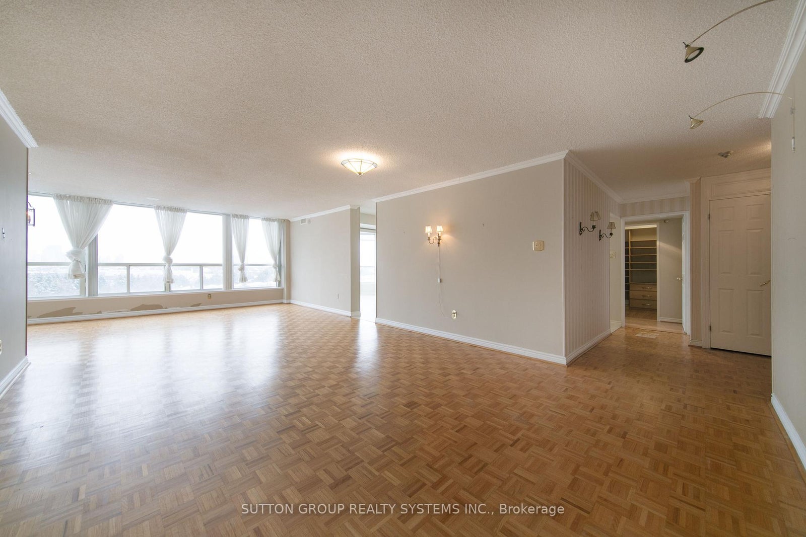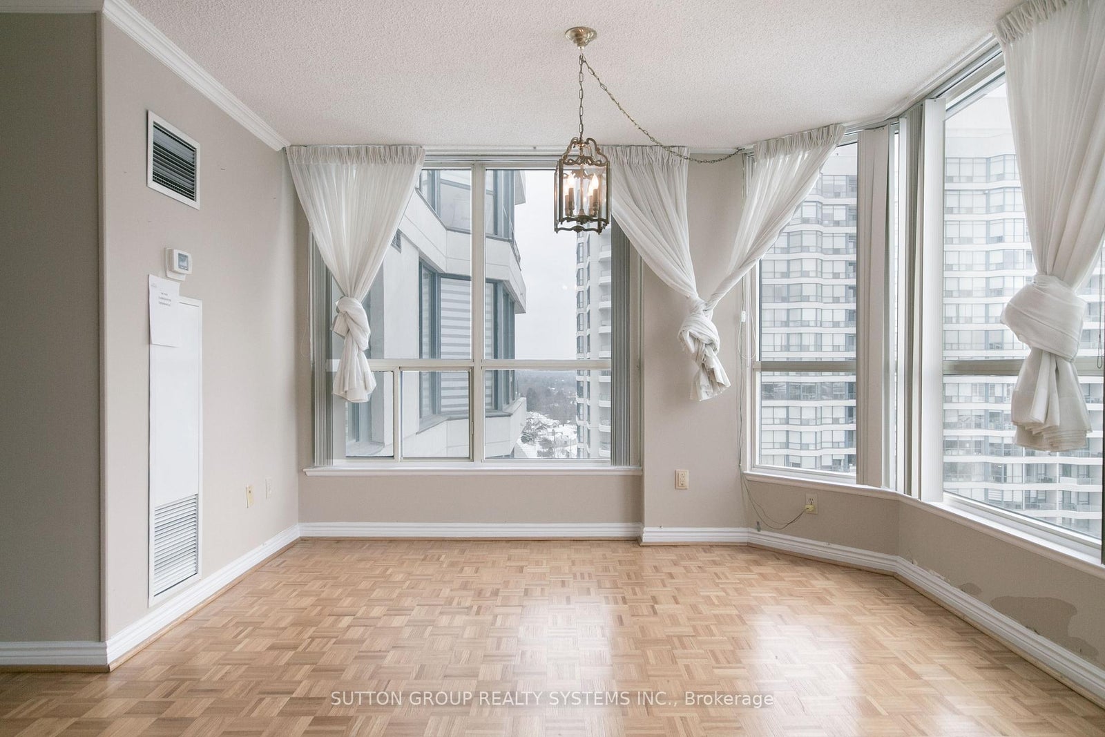 Best in Thornhill, this south-facing residence in the luxurious "Skyrise on Yonge" offers a rare unobstructed view and an exceptional living experience. Unit 1411 features approximately 1,675 sq. ft. of well-designed space, including 2 bedrooms and 2 bathrooms with a functional split-bedroom layout, ideal for both privacy and entertaining.Enjoy tranquil, sun-filled southern exposures with a southwest orientation that captures beautiful sunset views, all overlooking beautifully landscaped garden space and creating a peaceful and serene atmosphere.The unit includes an owned locker and two owned parking spaces, offering exceptional convenience and added value.Ideally located at Yonge & Clark, this well-maintained building offers an outstanding array of amenities, including a fully equipped fitness centre, tennis and squash courts, indoor pool, sauna, upgraded guest suites, and 24-hour concierge.Steps to public transit, restaurants, and grocery shopping, with easy access to major highways and a convenient commute to downtown Toronto, this is a premier opportunity in a highly desirable community.